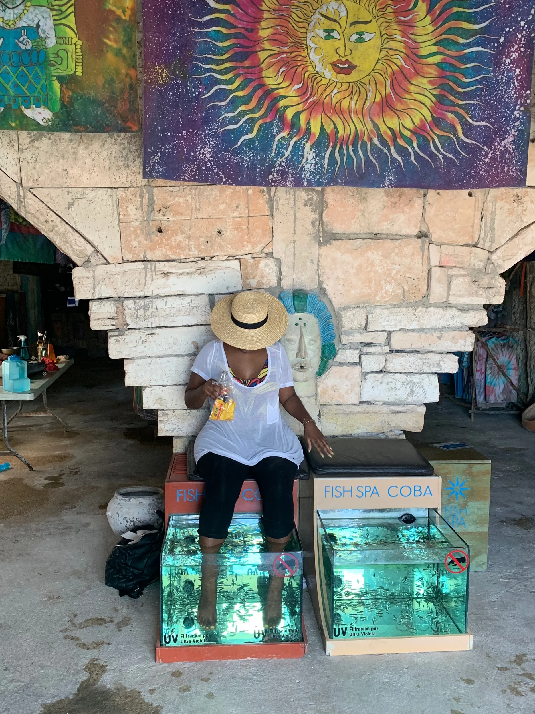 I am treating myself to a fish pedicure. The fish pedicure doesn’t hurt—just tickles slightly. I love this natural process. This never gets old and is only $5.